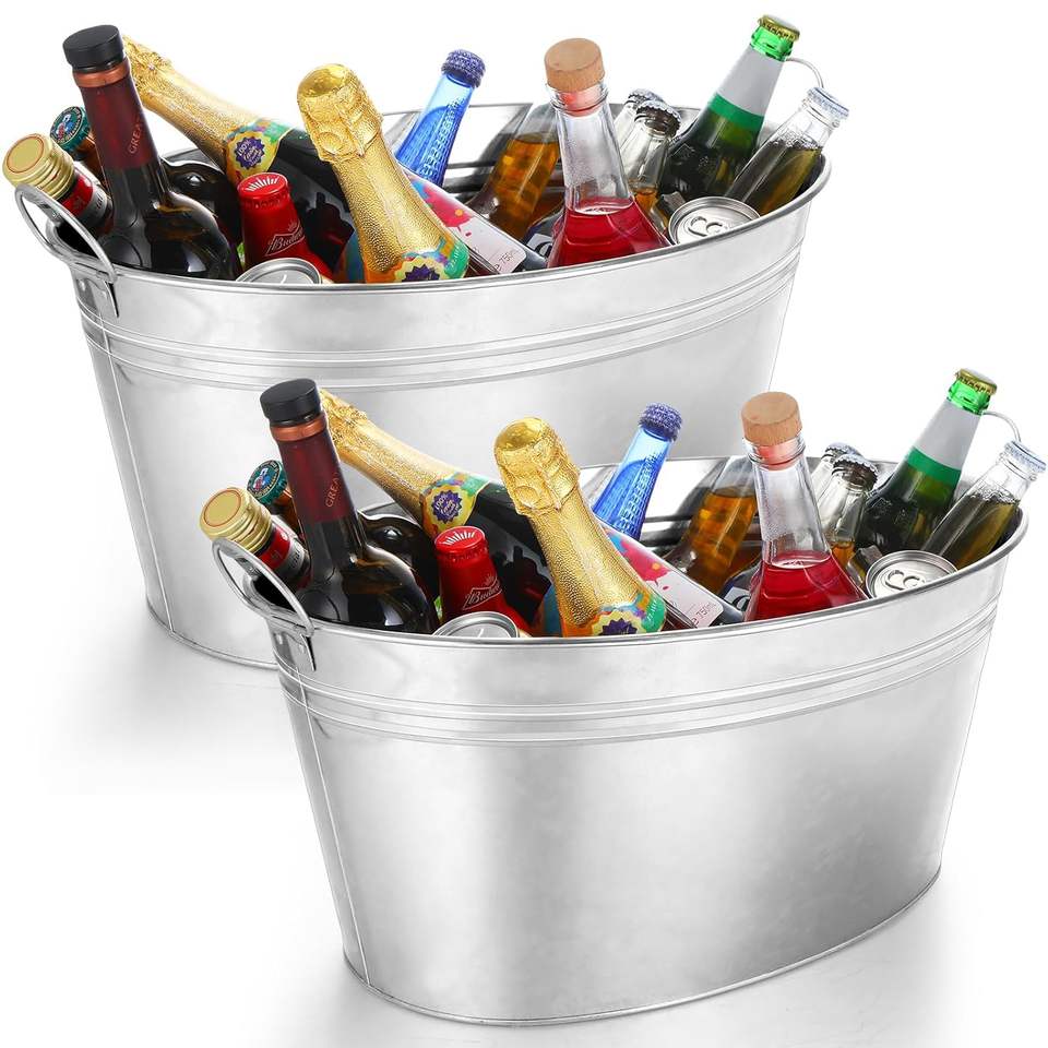 Cubo de hielo de metal galvanizado de diseño elegante con mango, enfriador de vino plateado para ocasiones de fiesta, cerveza, vino y bebidas