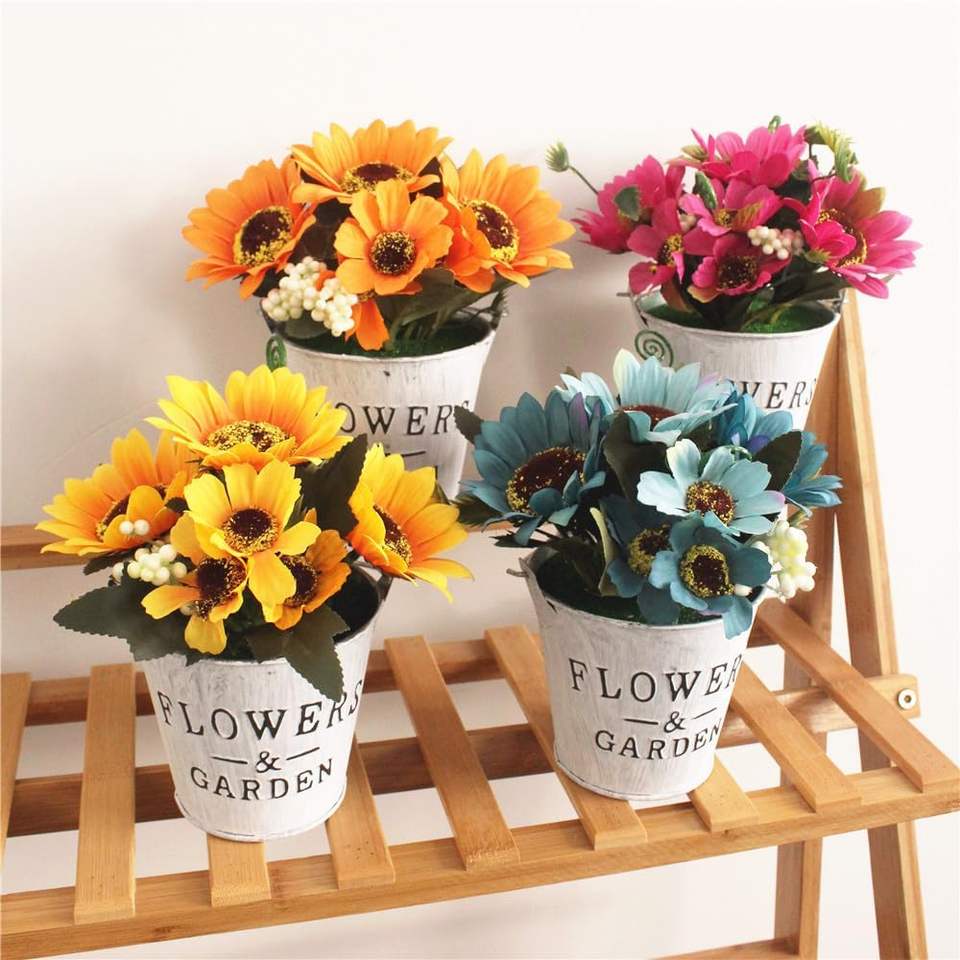 Maceta de flores de Metal de hierro multicolor de diseño elegante con mango de cuerda para el hogar, balcón, jardín, maceta decorativa