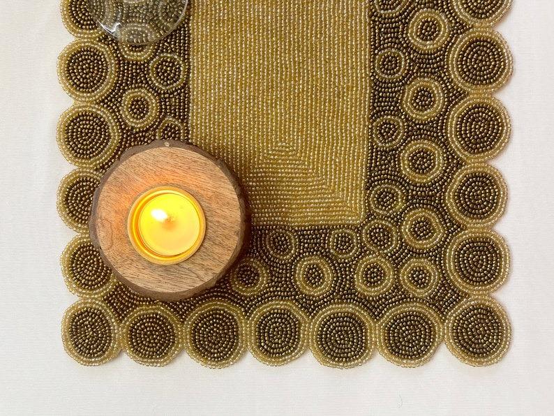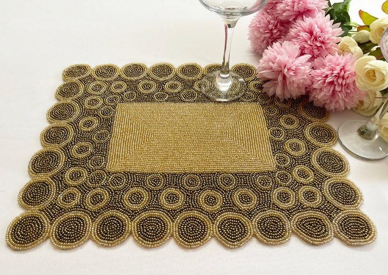 Mantel Individual con Diseño Elegante de Flores Blancas y Cuentas para Decoración del Hogar y Fiestas, Posavasos con Cuentas