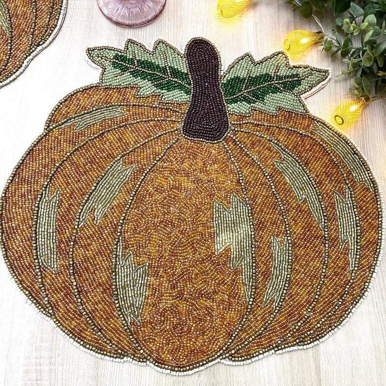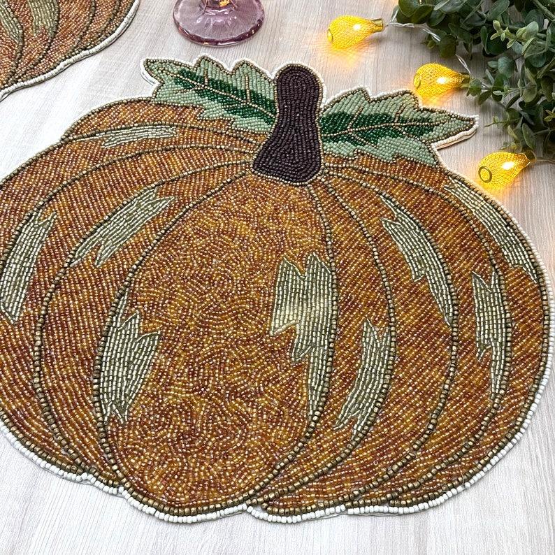 Mantel Individual con Diseño Elegante de Flores Blancas y Cuentas para Decoración del Hogar y Fiestas, Posavasos con Cuentas