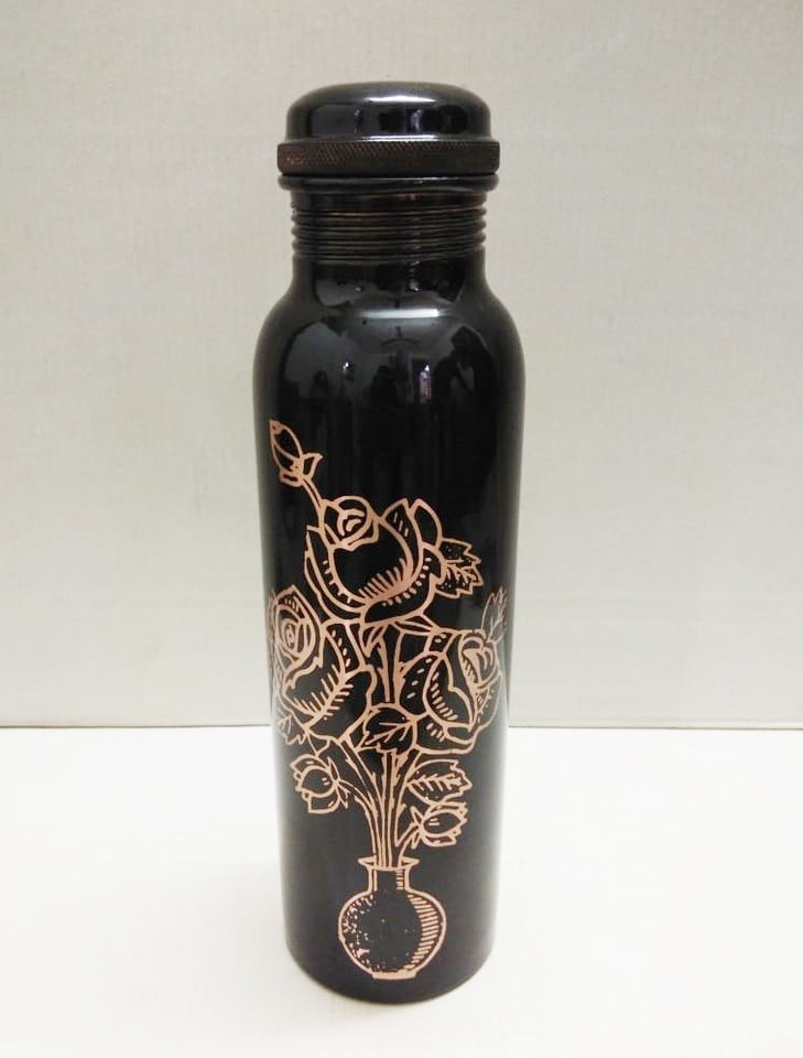 Botella de agua potable de cobre impresa con grabado de flores de lujo Precio al por mayor barato de alta calidad Botellas de bebida de diseño 2024 de lujo