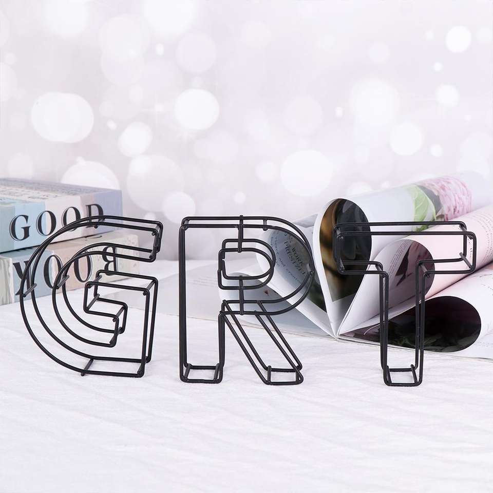 Alfabeto de alambre de metal geométrico de lujo en color negro para decoración de pared moderna ecológica para el hogar y el hotel hecha a mano