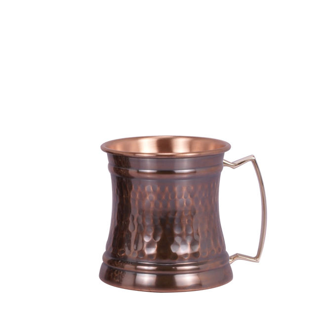 Fancy Hammered Design Moscow Mule Mug Vaso de metal de cobre puro de estilo antiguo único para bebidas refrescantes frías y cerveza