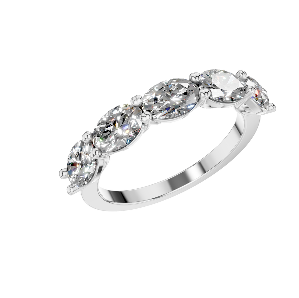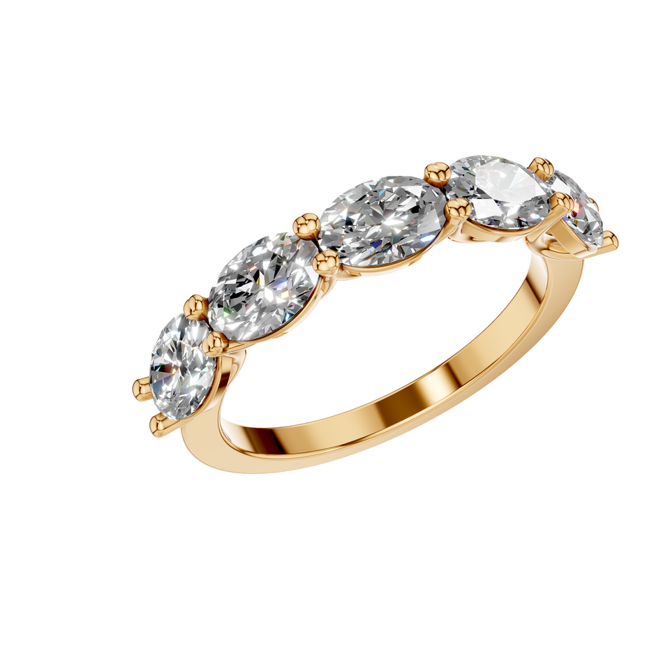 Fancy Lab Grown Moissanite Half Eternity Band Ring IGI Certificado 2,19 Carat Forma ovalada Chapado en oro amarillo Ajuste de punta fina