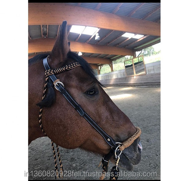 Fancy Leather Horse Sidepull Hecho con tintes de tambor Cuero indio por Kiran Overseas
