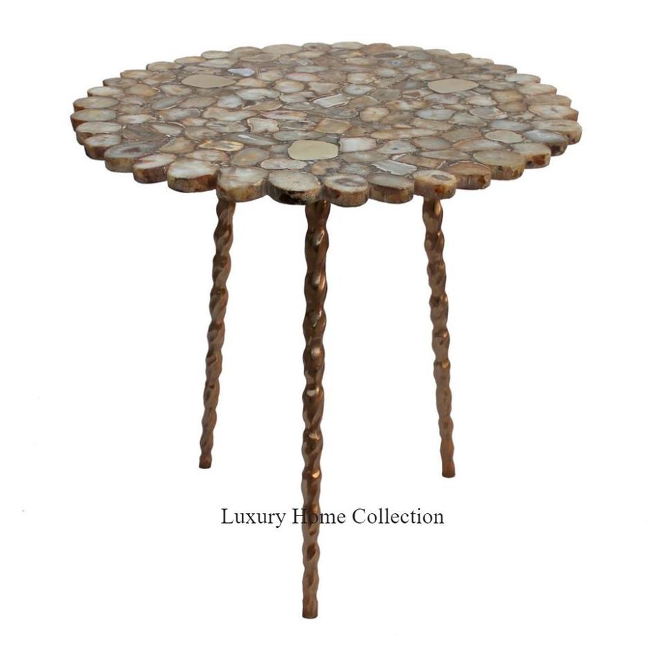 Mesa auxiliar de Metal de aspecto elegante, tamaño alto con diseño de fruta, parte inferior de Color dorado, chapado brillante, mesa de colocación potable de aspecto admirable