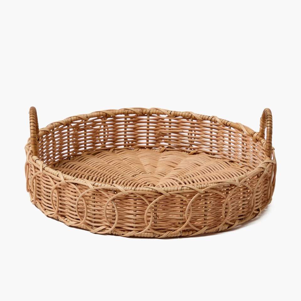 Bandeja de servicio de ratán ecológica de diseño moderno elegante, madera Natural con forma de tamaño de tendencia para uso en restaurantes de hoteles en casa