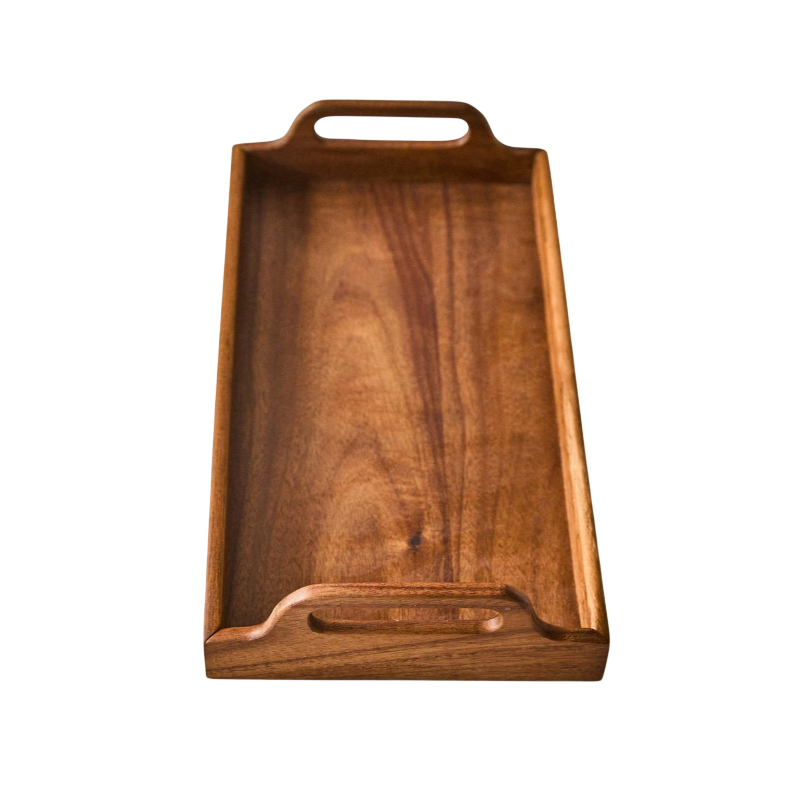 Elegante Bandeja de Servir Rectangular de Madera Natural para el Hogar y Hoteles, Bandeja Artesanal para Servir Té y Café