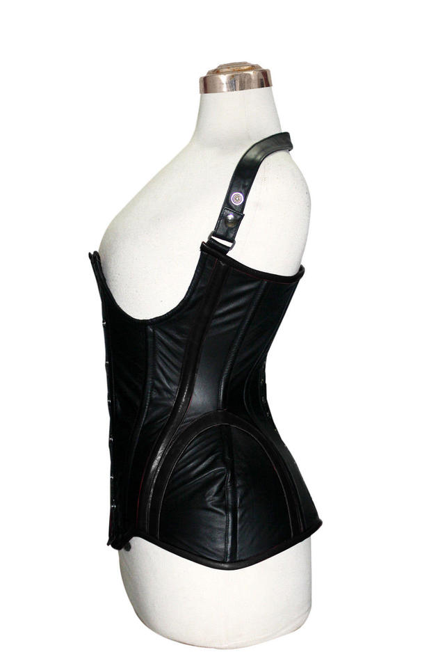 Entrenador de cintura gótico OEM y ODM, corsé de cuero elegante, moldeadores deshuesados de acero, correa de hombro transpirable, copas delanteras Busk, paneles de modestia