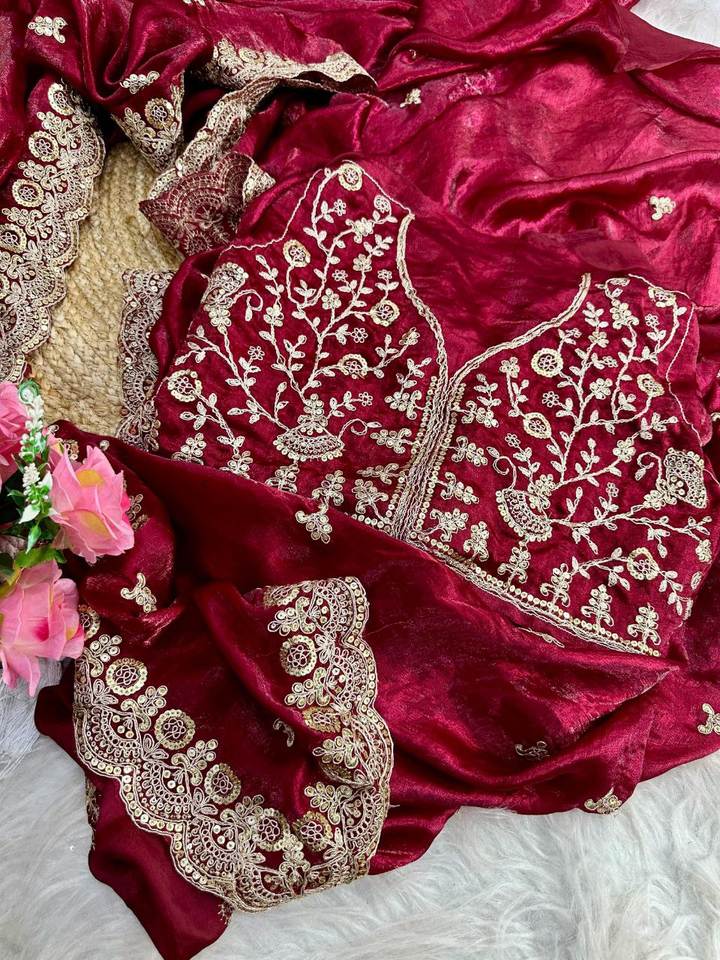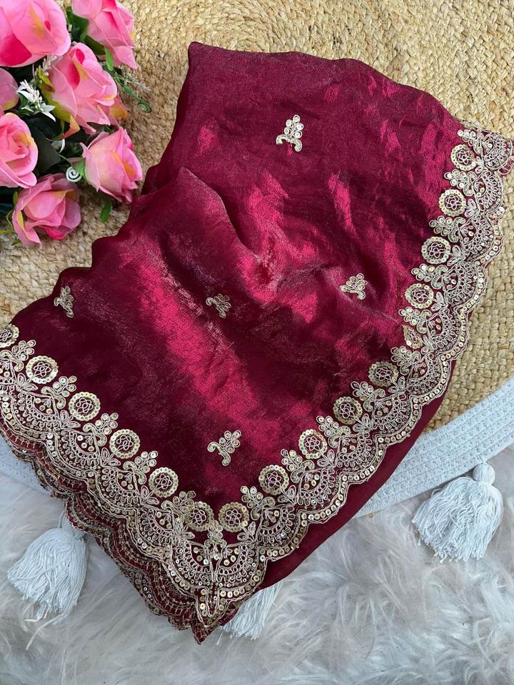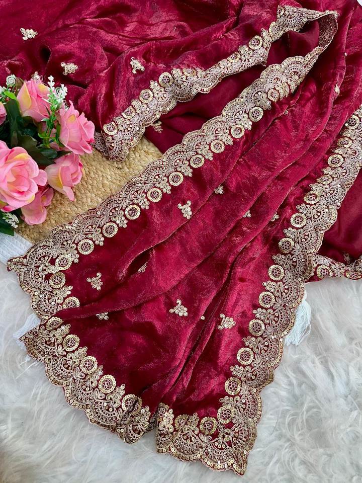 Saree de seda satinada de lujo con lentejuelas y bordado de Jari Dori, borde elegante, perfecto para bodas, fiestas y festivales