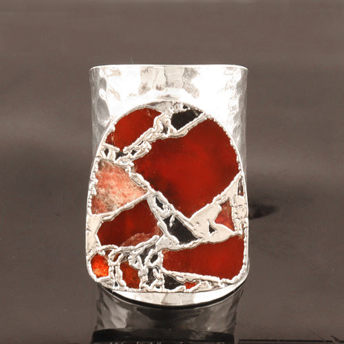 Forma de lujo Mohave cobre rojo turquesa declaración anillo latón plateado acabado martillado ancho pulgar banda anillo regalo para padre