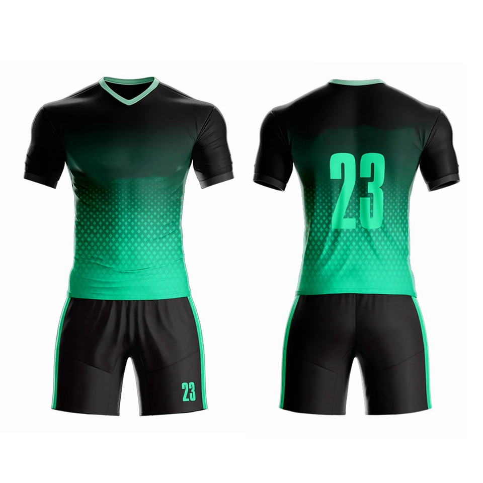 Fancy Soccer Uniformes Color azul Hecho en poliéster Media manga Cómodo Sublimación para hombres Uniformes de fútbol Camiseta de fútbol