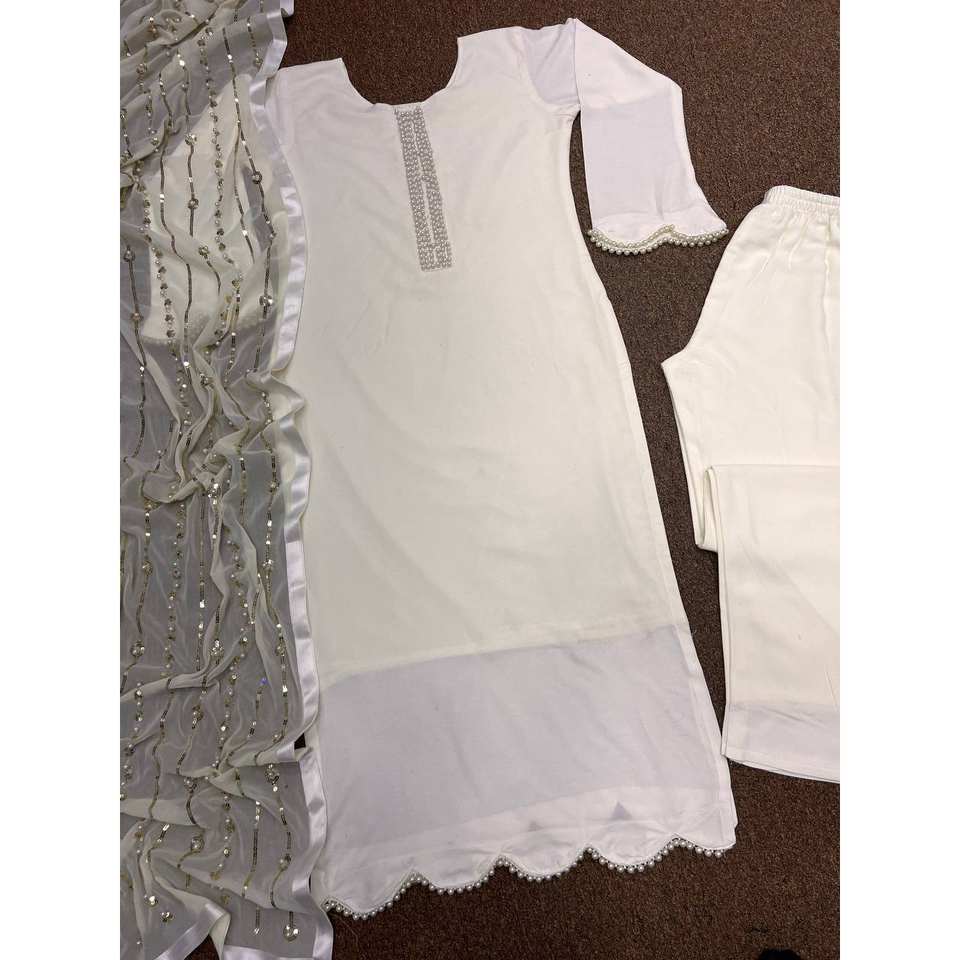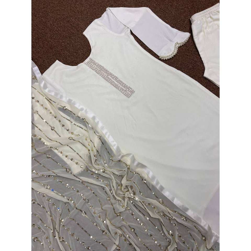 Conjunto de Traje con Costuras Elegantes y Adornos de Moti, Hermosa Ropa India y Pakistaní