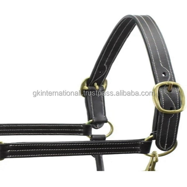 Costura y relleno de lujo Halter de caballo de cuero inglés negro con herrajes de latón ajustables completos de alta resistencia Halter Horse
