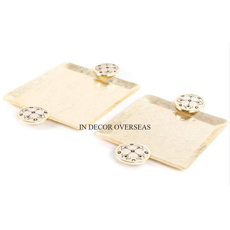 Bandeja de servicio de metal de calidad superior chapada en oro de alta calidad con textura elegante y elegante con asas de aspecto atractivo a un precio impresionante