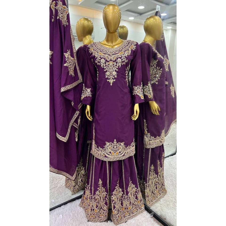 Fancy Top-Bottom y Dupatta Set con bordado pesado y Dori-Sequence Work Talla XL