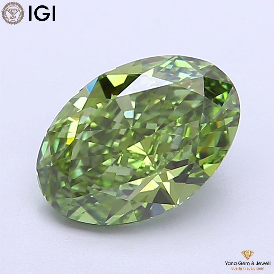 Número de Modelo:Oval CVD 3.00 CT. Fancy Vivid Green-VVS2