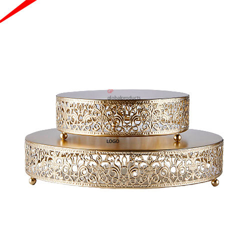 Elegante Soporte Redondo de Dos Niveles para Pastel de Boda con Base Floral de Metal, Soporte Personalizado para Cupcakes Dorado