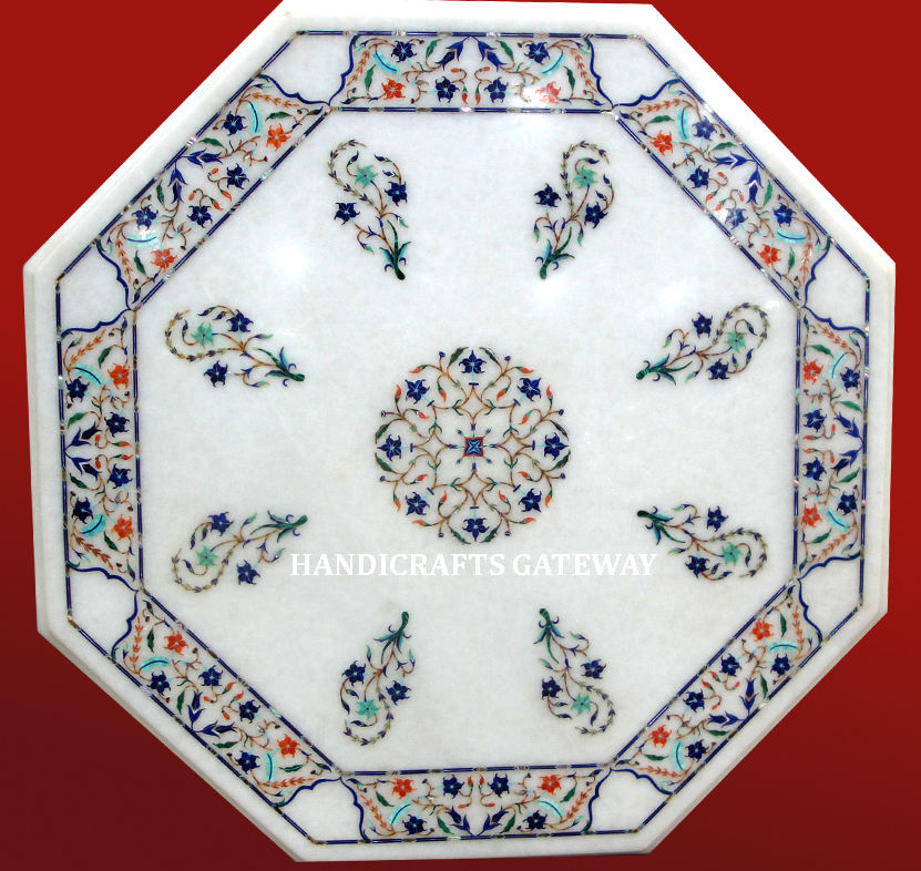 Mesa de centro con incrustaciones de mármol blanco elegante con hermoso diseño y comedor completo de color fabricado y suministrado por Agra Table Top