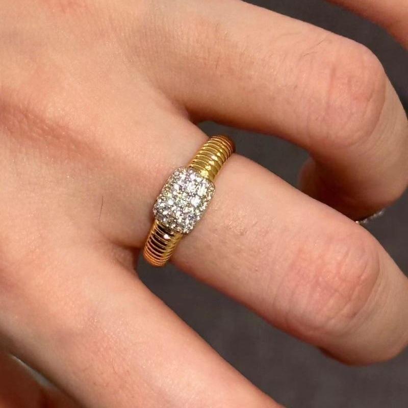 Anillo Vintage Simple de Alta Gama Fangpang, Chapado en Plata de Ley S925 con Oro de 18K, Diseño de Órgano, Anillo de Moda Estilo Baguette Francesa