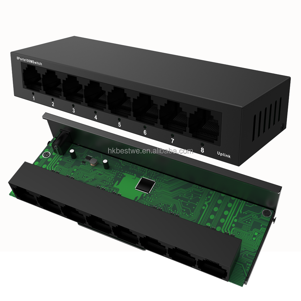 Switch Ethernet Rápido Sin Ventilador de 10/100 Mbps con 8 Puertos FE, Switch de Red No Administrado con 8 RJ45 para el Hogar