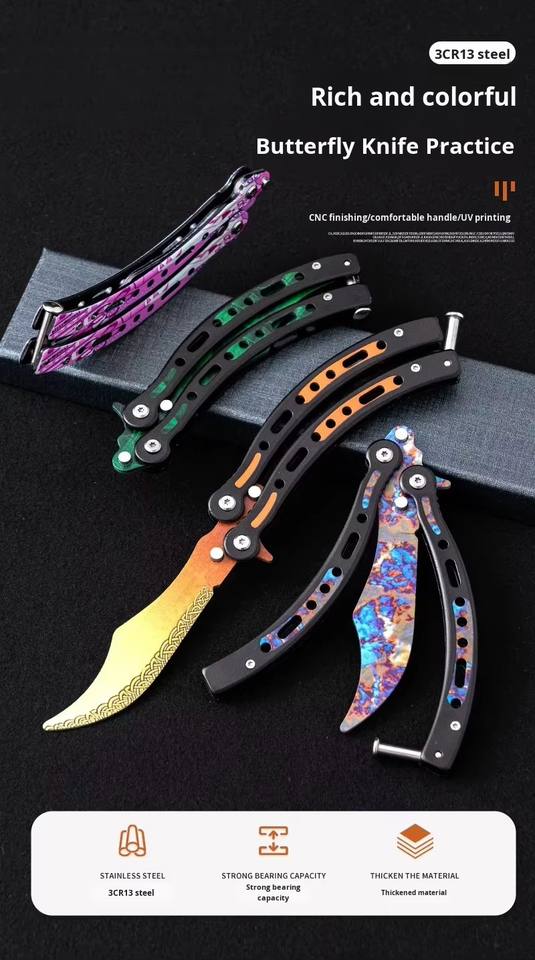 Navaja Plegable de Entrenamiento Fanstoon, Nueva, Colorida, con Diseño de Mariposa, de Acero Inoxidable, sin Hoja, para CSGO, Camping, Bricolaje, OEM, Venta al por Mayor, 3 Años de Garantía