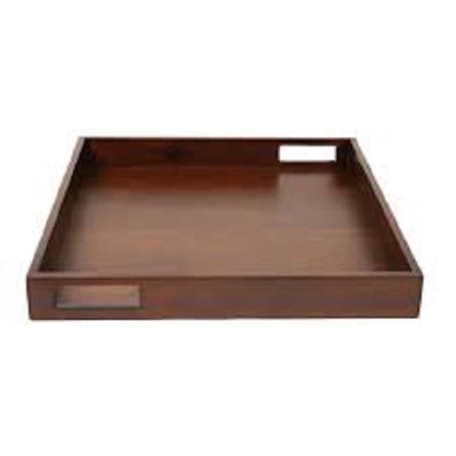 Material de bandeja de decoración de cocina de diseño fantástico con forma redonda y bandeja de mango de 2 colores marrón para accesorios de utensilios de cocina