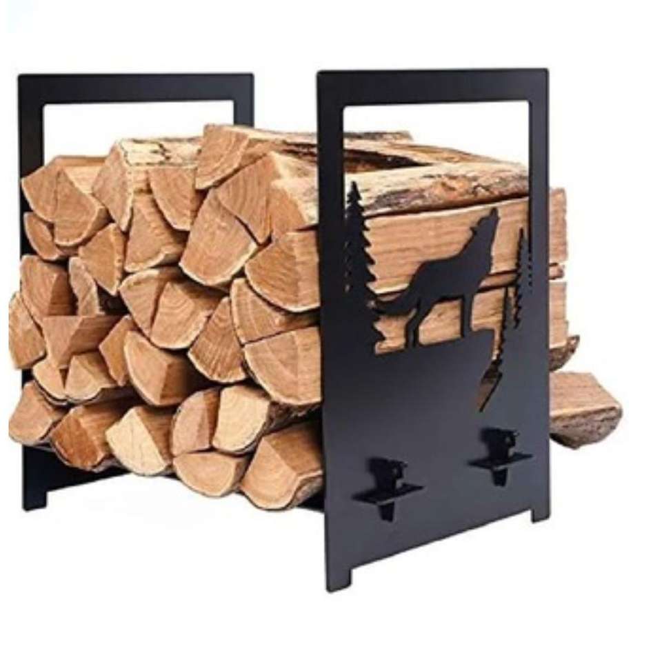 Estante de almacenamiento de madera de diseño fantástico en Metal negro recubierto de color perfecto para soporte de troncos de chimenea de gran tamaño Metal resistente