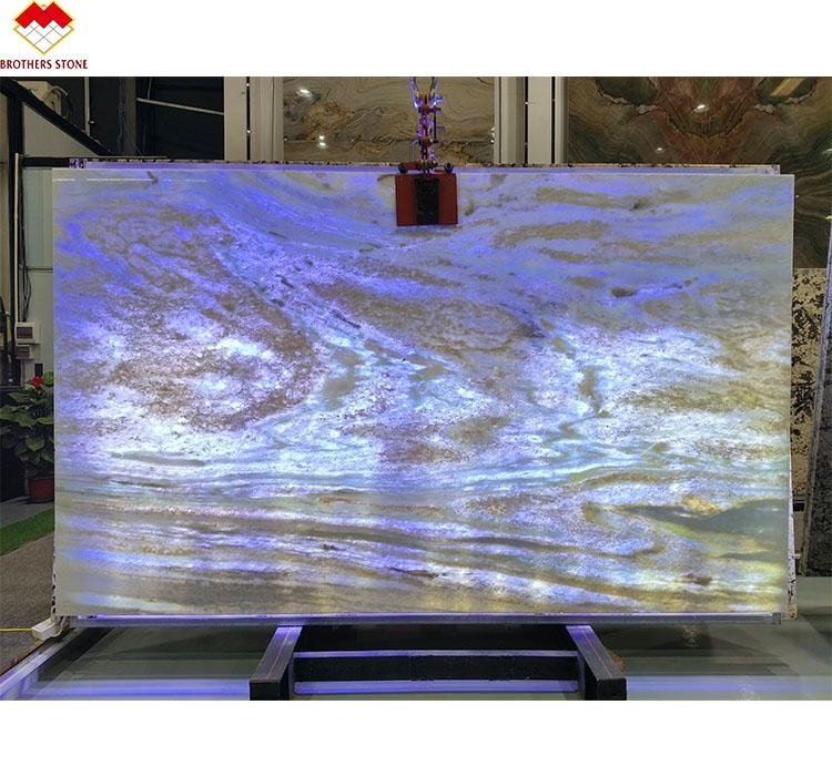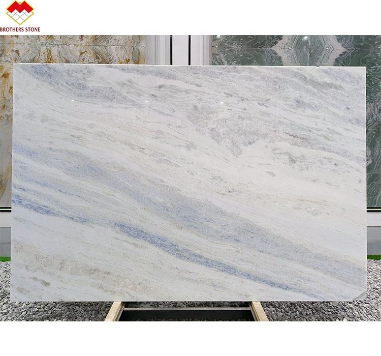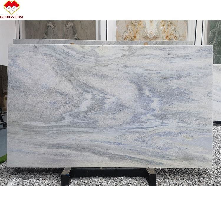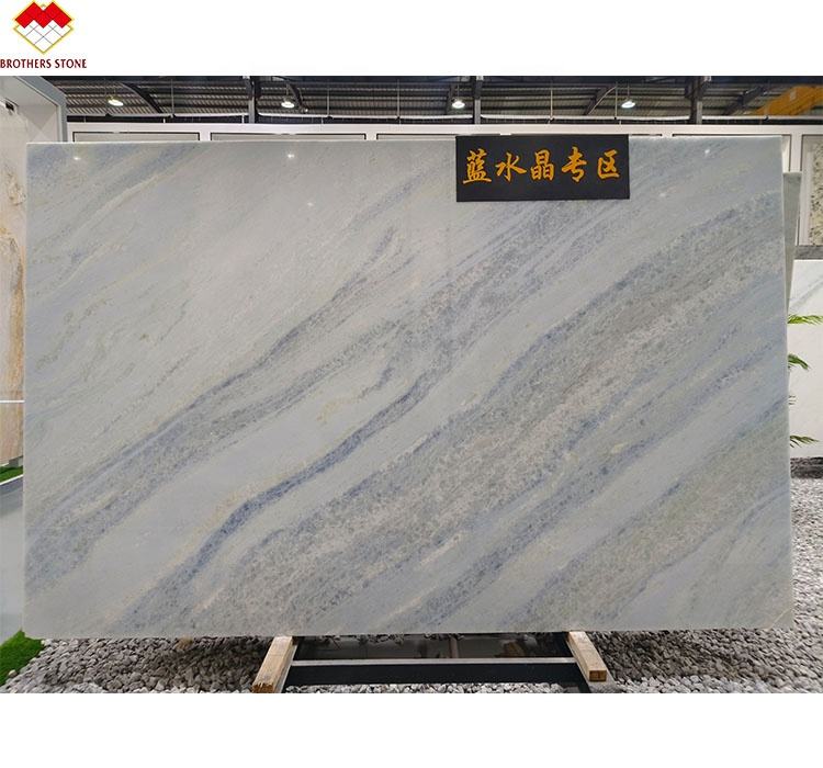Mesa de encimera de tocador de mármol azul fantasía OEM piedra de cuarzo de cristal azul personalizada losas de azulejos de mármol azul cielo translúcido