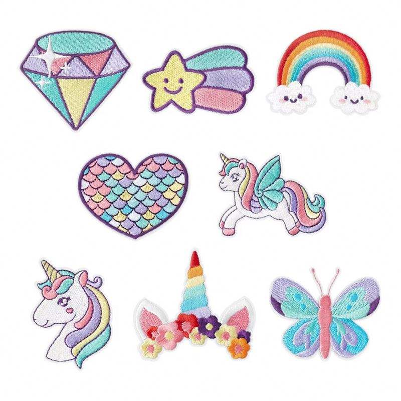 Parche Bordado Termoadhesivo con Diseño de Estrella Fugaz, Unicornio y Mariposa en Color Macarrón Fantasía para Decoración de Ropa, Sombreros y Bolsos