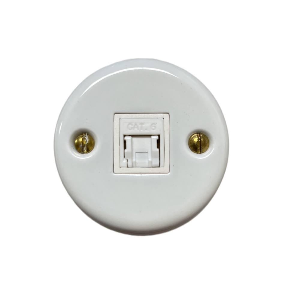 Vintage White Ceramic Unshielded UTP RJ45 Data Socket