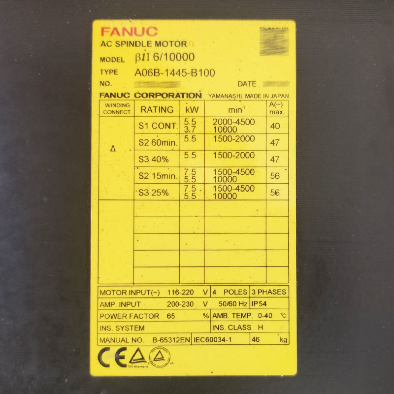 Nombre del producto:Motor A06B-1445-B100 del eje de la CA de Fanuc