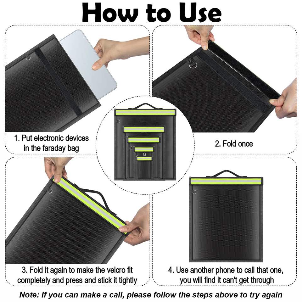 Bolsas de Faraday con asa y tira reflectante, bolsa de EMP antiseguimiento, bolsa de bloqueo de señal ignífuga e impermeable, jaulas de Faraday