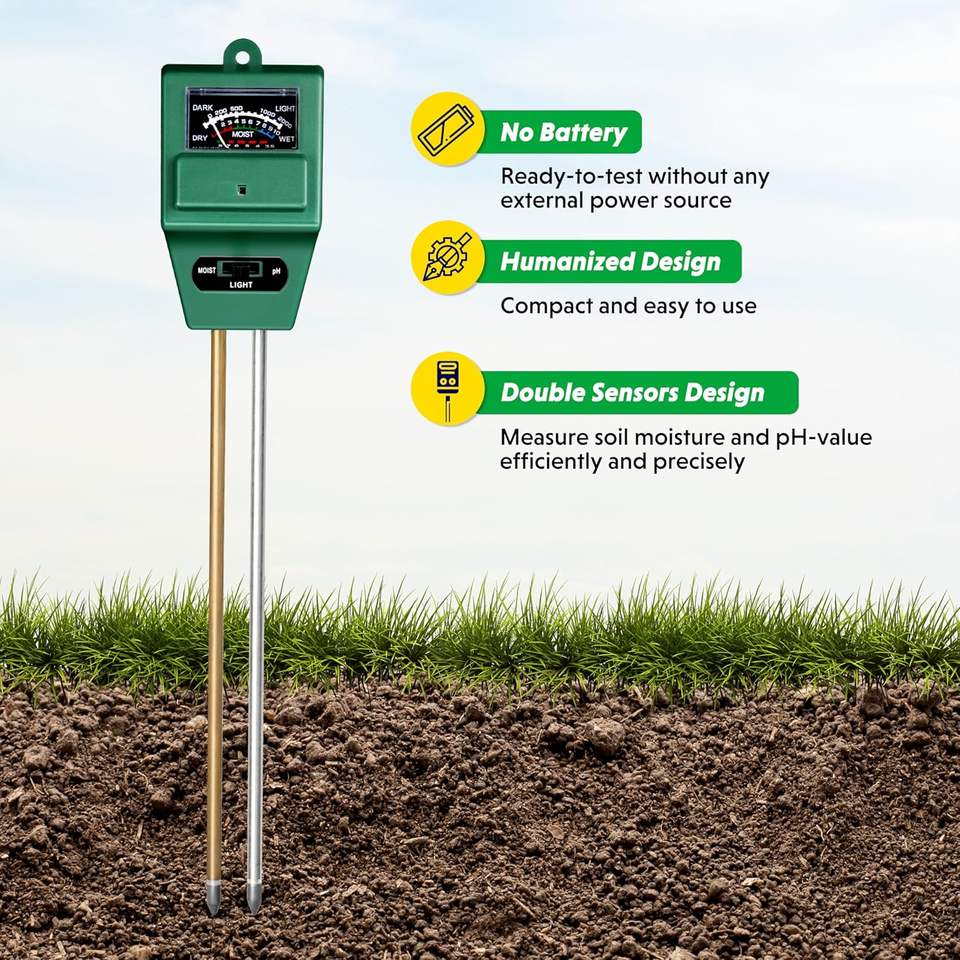 Herramientas para Análisis de Suelo Agrícola: Medidor de pH, Humedad y Luz Solar para Vegetales, Flores, Plantas, Bonsáis, Colorido, Modelo TY-260319-02