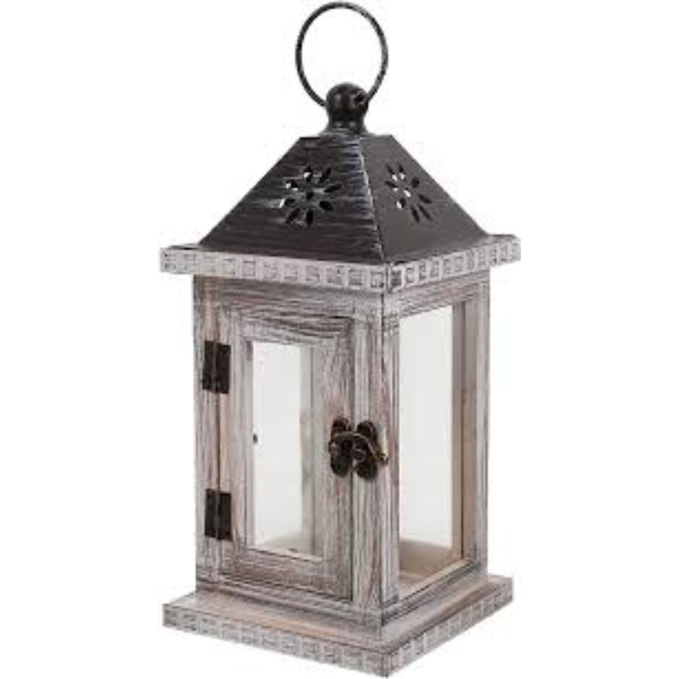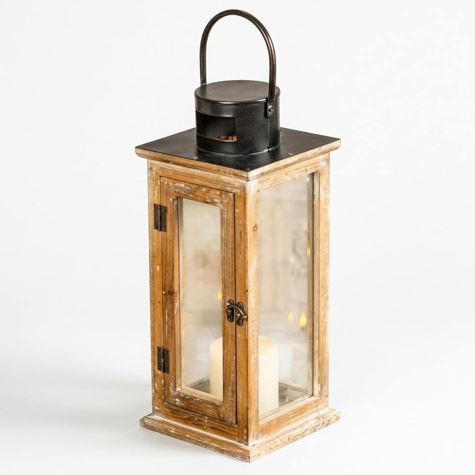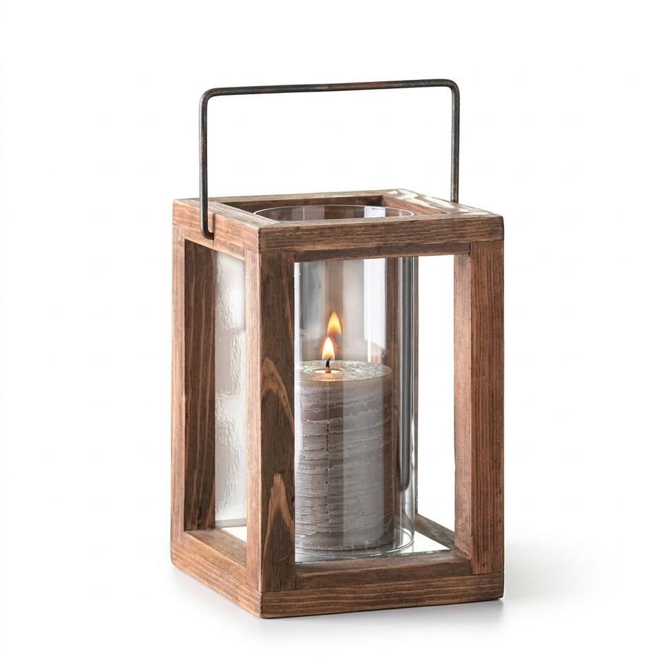 Juego de 3 Faroles de Vidrio y Madera de Abeto Rústicos Estilo Rústico Vintage para Decoración de Suelo