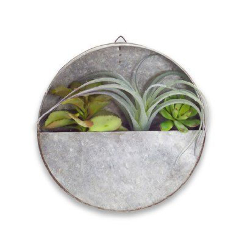 Maceta Redonda de Metal Galvanizado de 14 Pulgadas Estilo Rústico, para Interiores y Exteriores, Soporte para Suculentas y Plantas, Decoración de Jardín de Hierro