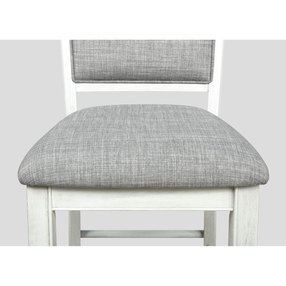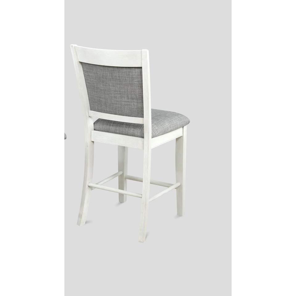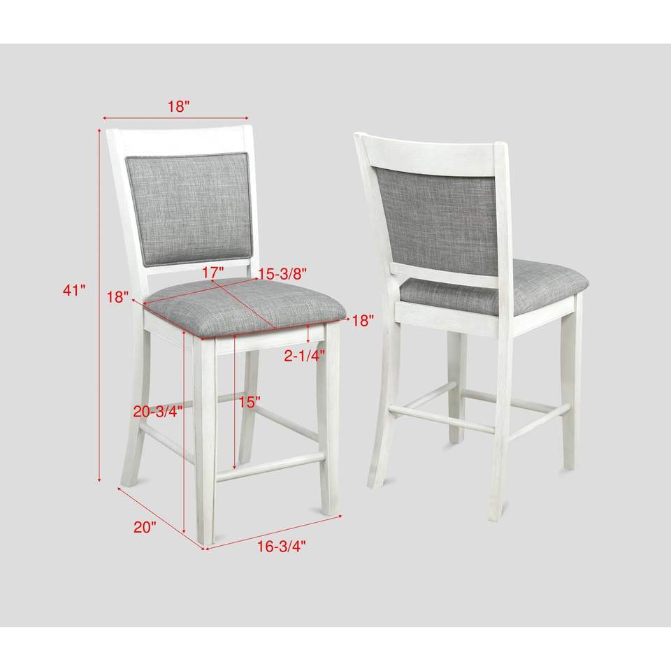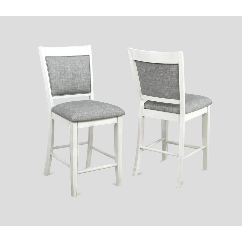 Juego de 2 Sillas de Comedor Estilo Rústico con Respaldo Alto, en Lino Blanco y Gris, con Reposapiés de Madera, Muebles de Barra