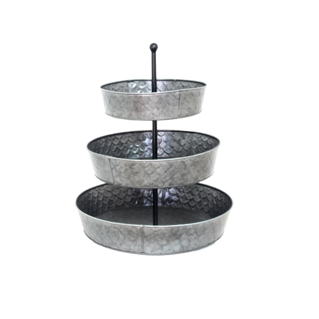 Soporte de bandeja galvanizada de 3 niveles estilo granja, exhibición de servicio de Metal para mesa de fiesta, decoración del hogar y presentación de alimentos