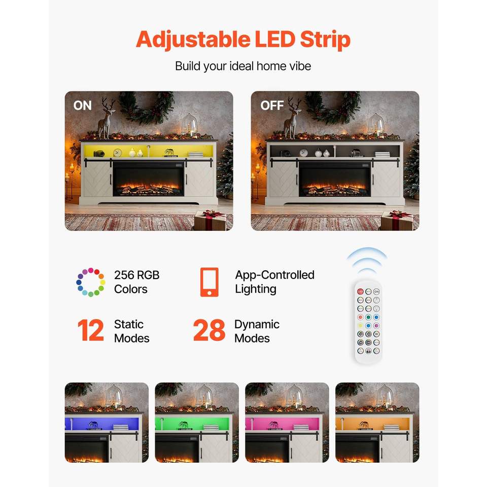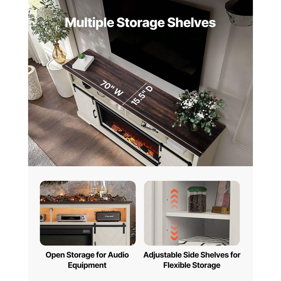 Centro de Entretenimiento Estilo Rústico de 36 Pulgadas con Chimenea, Soporte para TV de hasta 80 Pulgadas, Diseño Urbano Chic