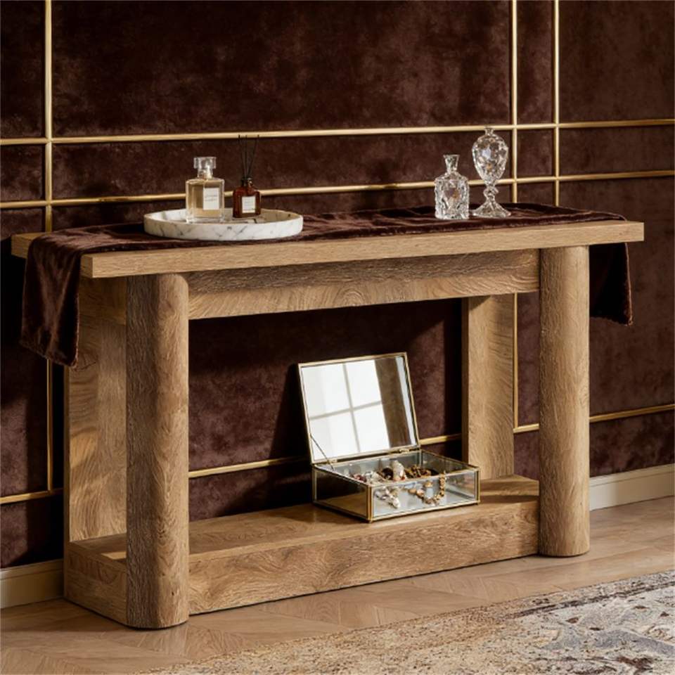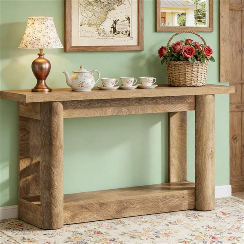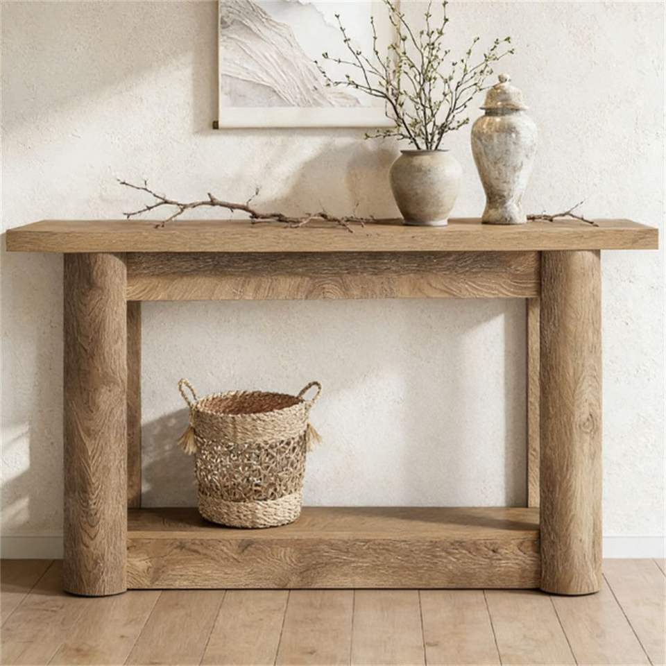 Mesa de Consola Estilo Rústico para Entrada con Almacenamiento, Mesa Auxiliar para Sofá