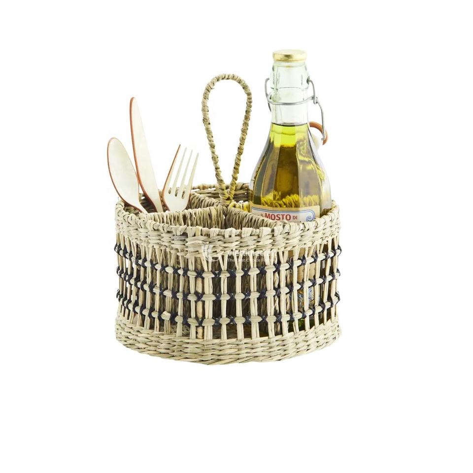 Portautensilios de Mimbre Estilo Rústico, Organizador de Cocina Natural Hecho a Mano, Organización de Encimera, Vietnam