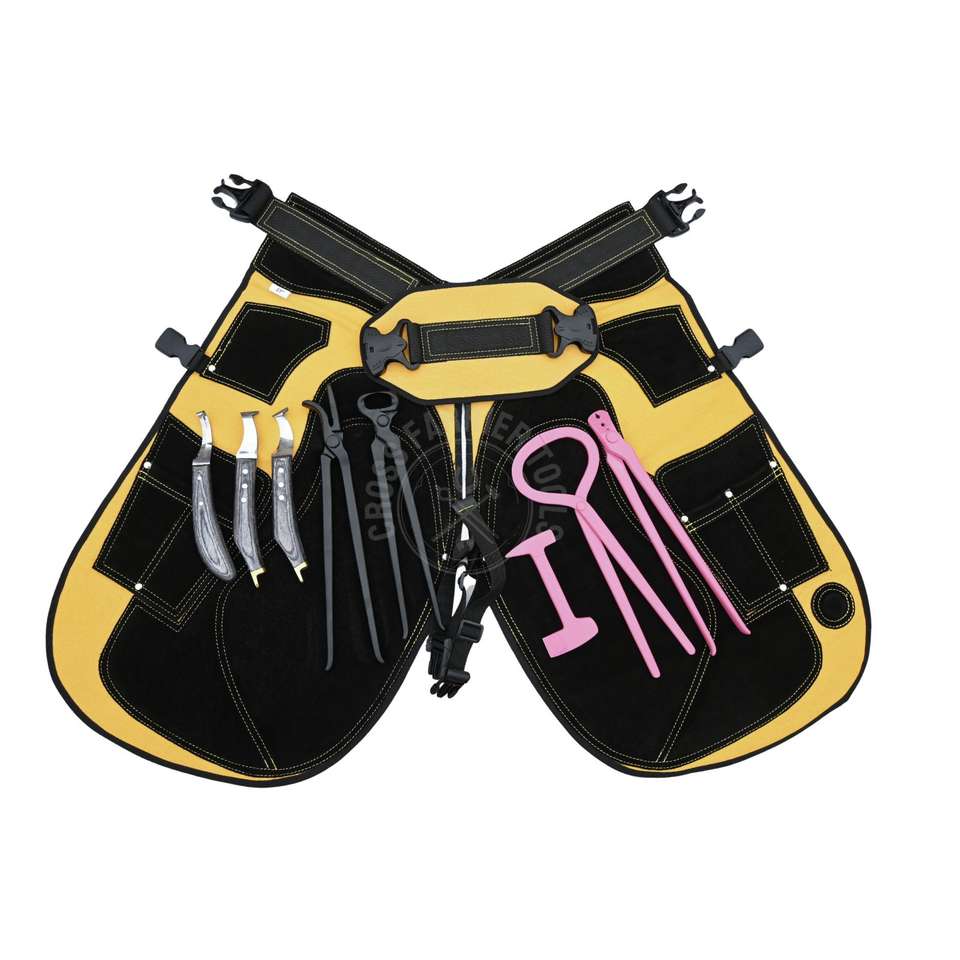 Cantidad mínima de pedido:1 estuche Kit de recorte de pezuñas y herrado Juego de delantal de herramientas de herrero