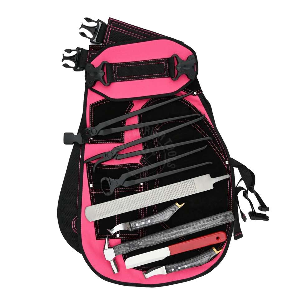 Palabras clave:Delantal de herrador rosa, corta cascos, engarzador de cascos