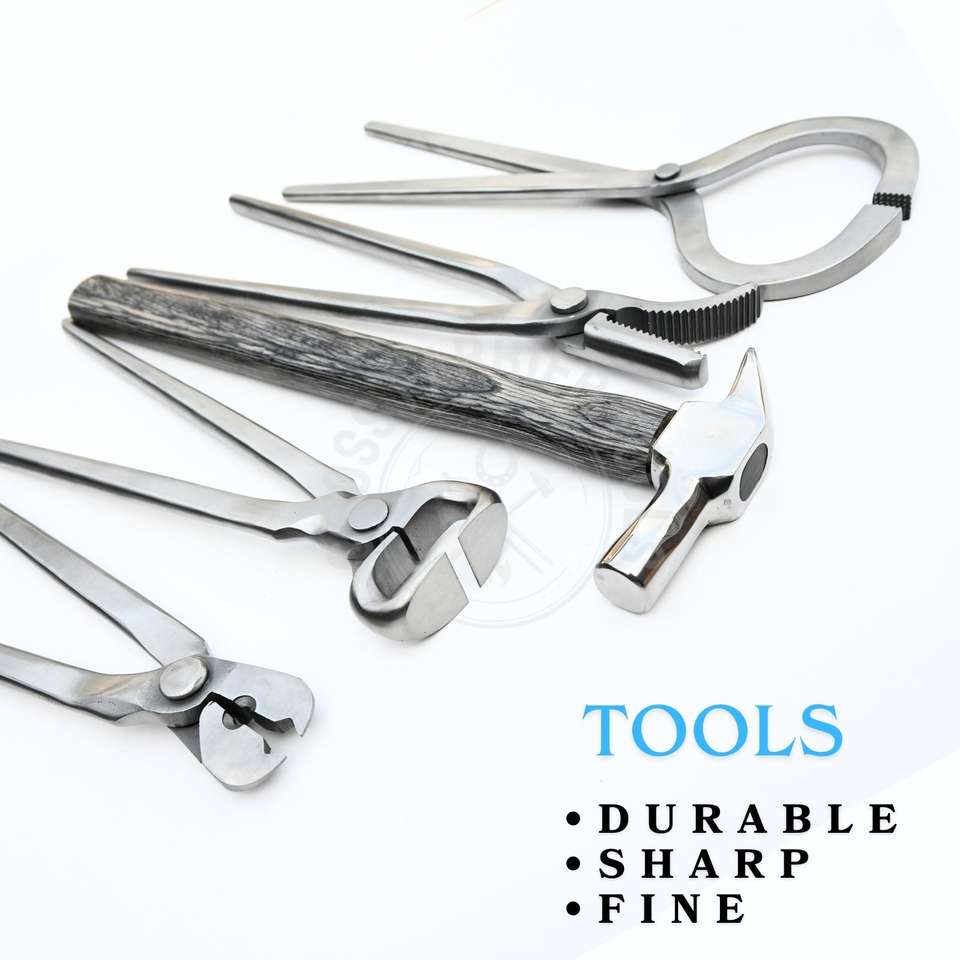 Palabras clave:Herramientas para el cuidado de pezuñas de caballo: cortador de pezuñas, martillo de herrador.