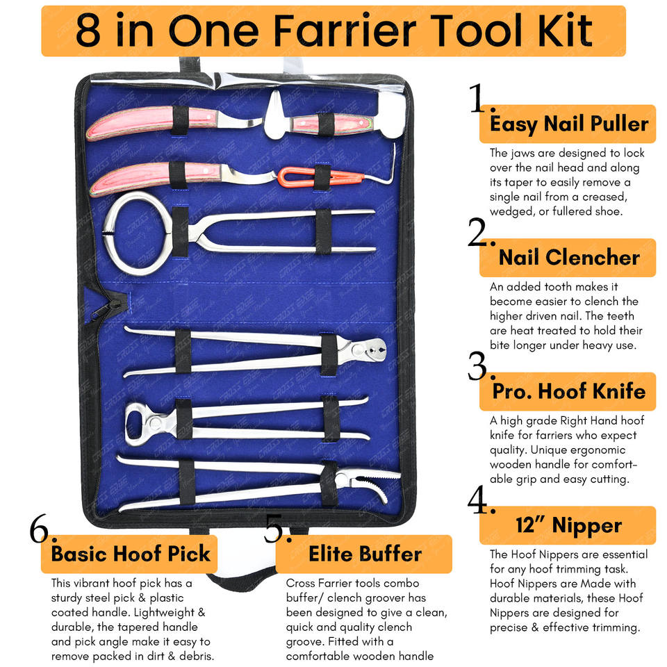 Palabra clave:Hoof Trimming Kit, conjunto de herramientas Farrier para caballos Aplicación y usag