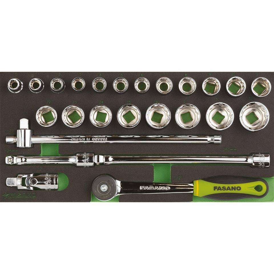 Juego de llaves de vaso Fasano de 100 piezas, 1/4, 3/8, 1/2 pulgadas, métricas y SAE, con barra de extensión y llave dinamométrica para reparación de automóviles
