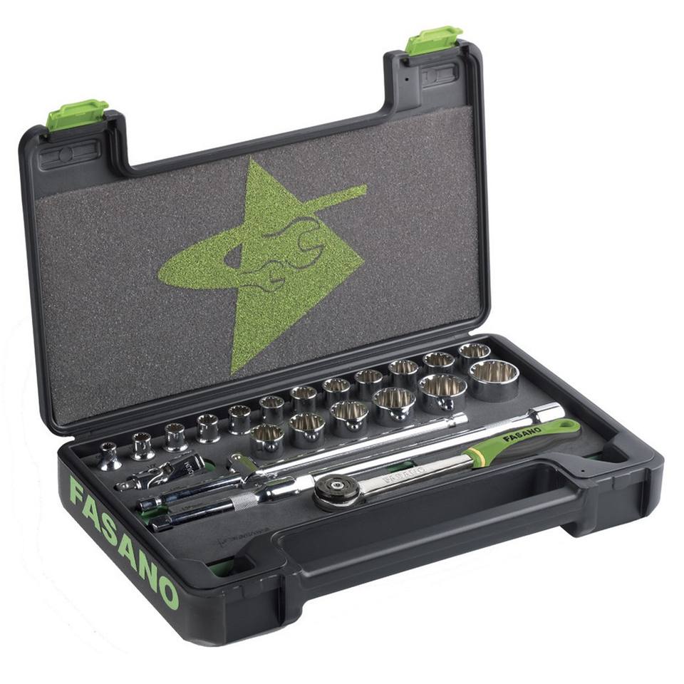 Juego de llaves Fasano de 23 piezas métricas con trinquete y barra de extensión para reparación automotriz