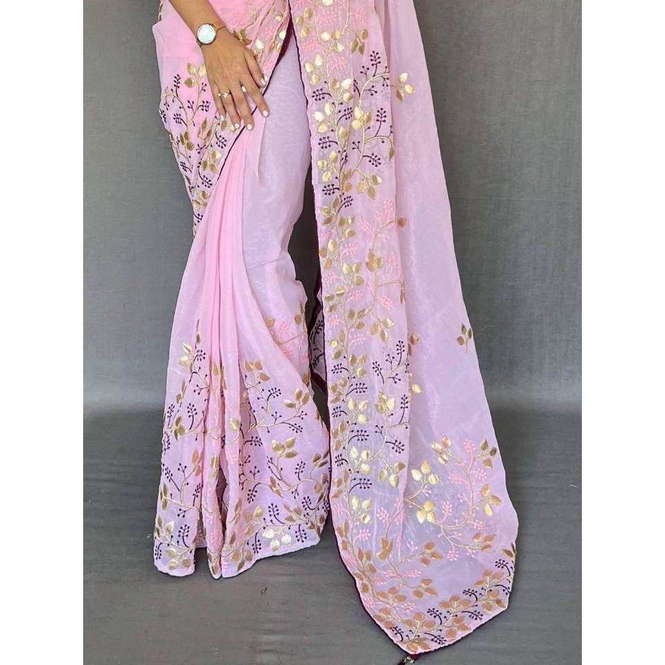 Fascinante Sari de Chifón Rosa Bordado con Blusa para Bodas