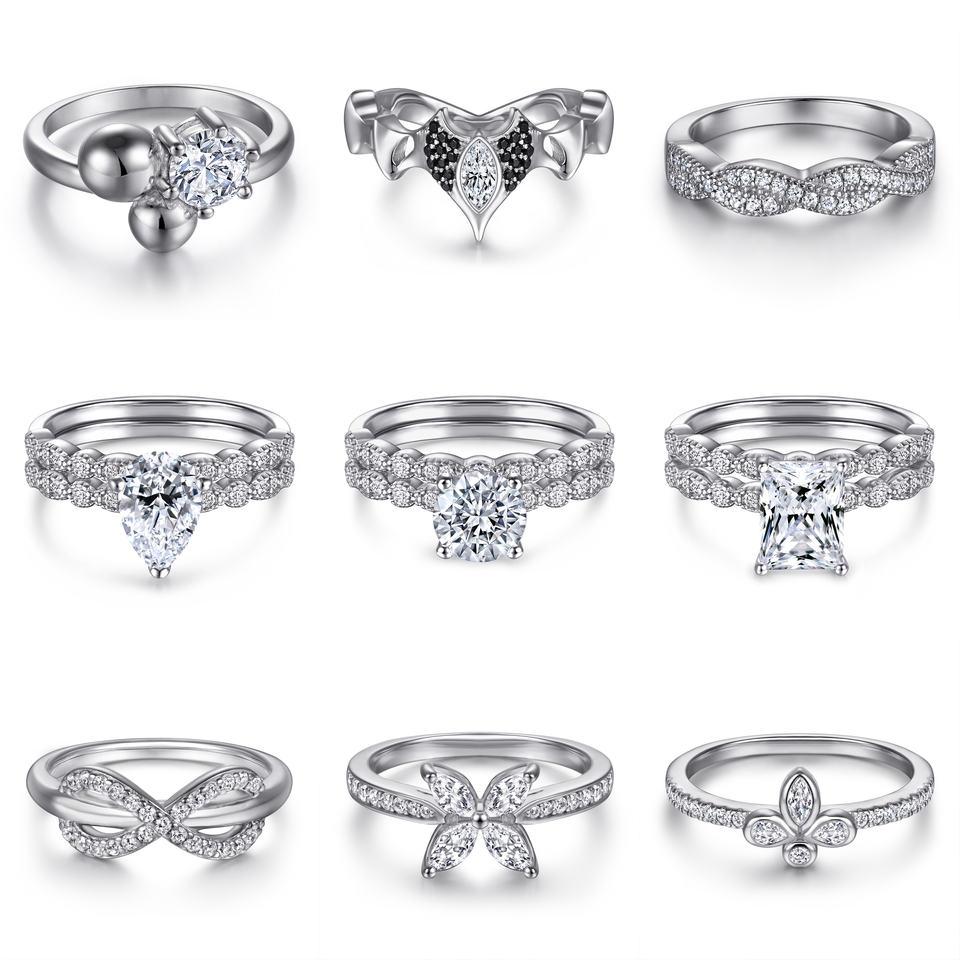 Colección de Anillos de Plata de Ley 925 para Mujer - Diseños Variados con Circonita Cúbica, Halo, Solitario y Estilos Geométricos