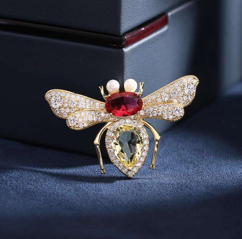 Aleación de moda Rhinestone abeja aguja grande alfileres broche mujeres cristal borla insecto Animal boda fiesta joyería regalos chapado en oro